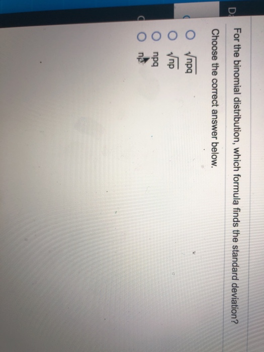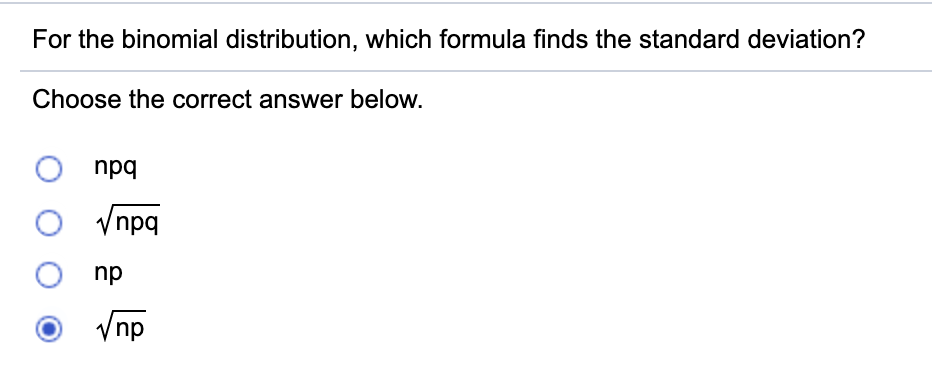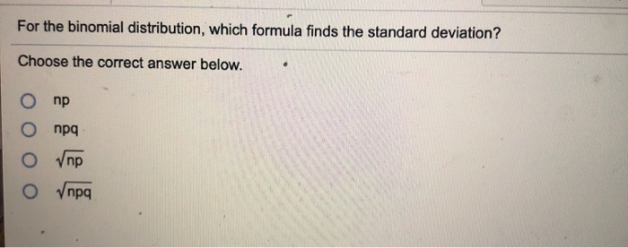 For The Binomial Distribution Which Formula Finds The Standard Deviation